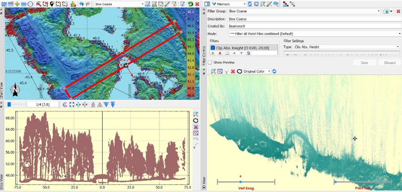 A l’issu des relevés et d’un lourd traitement nous avons concaténé l’ensemble des données, pour obtenir un modèle numérique de terrain de précision. Ce MNT va permettre une analyse précise de l’ensemble de la zone afin de connaitre les échanges hydrauliques entre les périodes de hautes et basses eaux de la Marne.